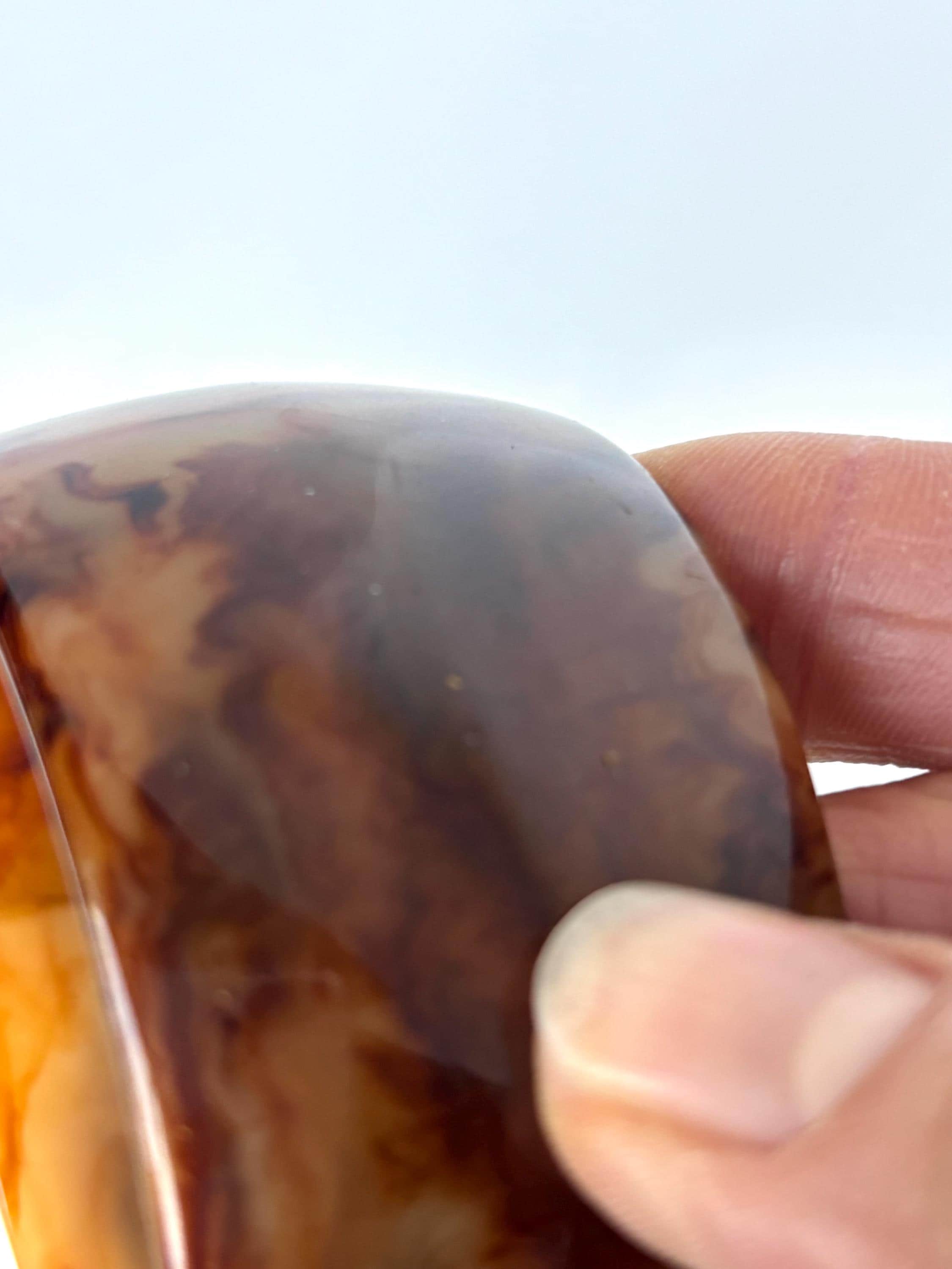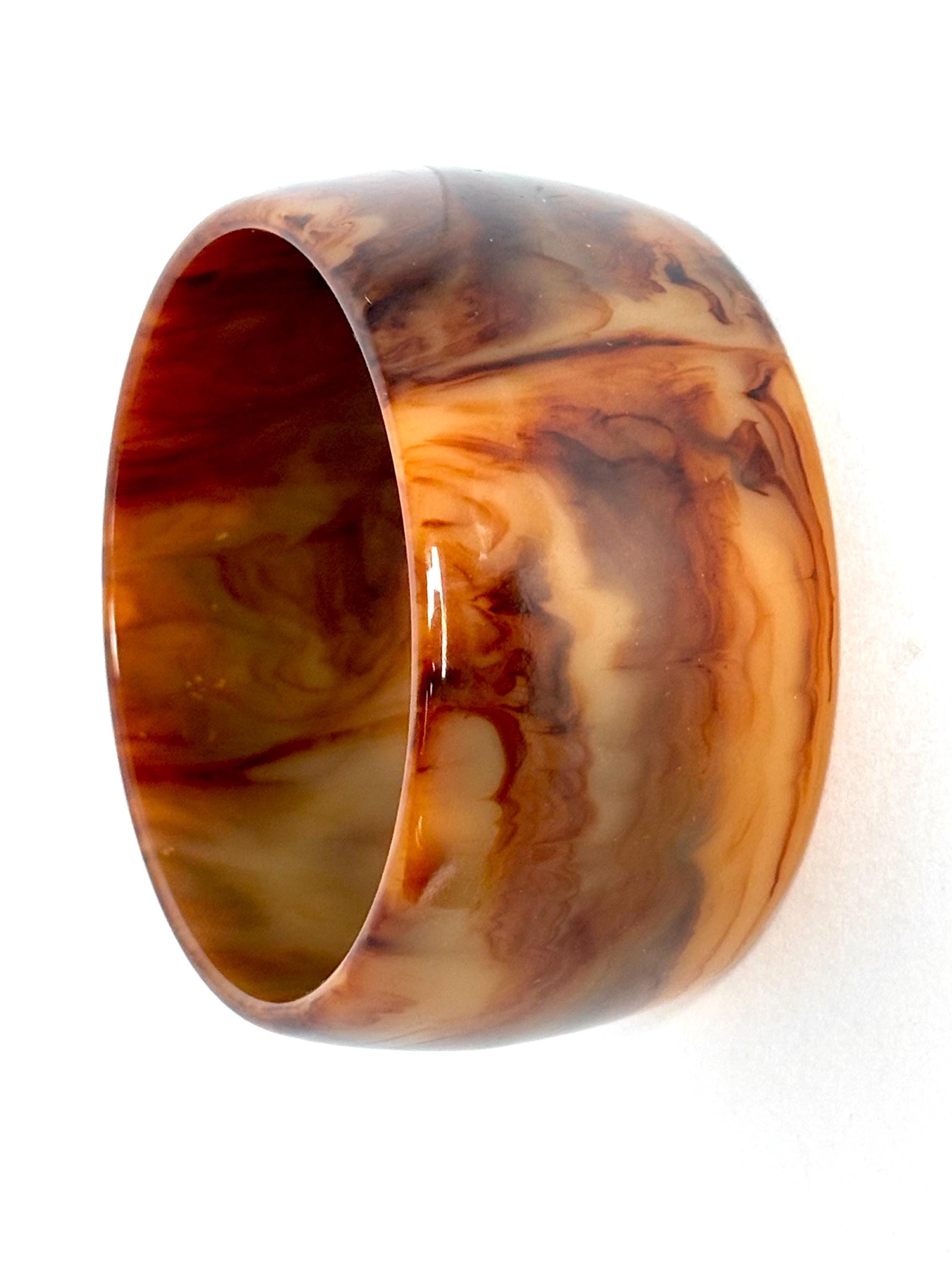 The genuine Bakelite bracelet has translucency and height (~1-1/2" tall!).