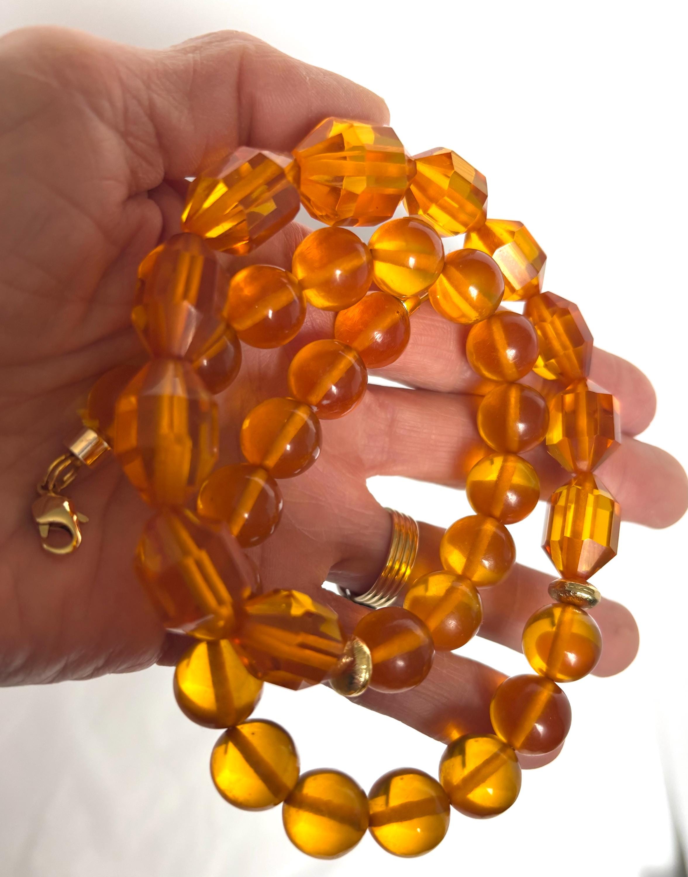 The Bakelite beads are healthy and shiny with mild vintage wear.
